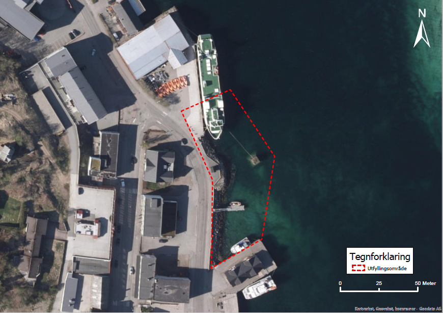 Det søkes om å fylle ut omtrent 20000 kubikkmeter sprengstein over et areal på omtrent 2500 kvadratmeter sjøbunn. Tiltaket ønskes gjennomført i 2020.
